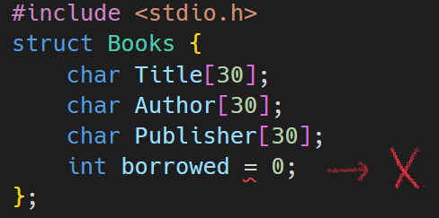 โ ๊ตฌ์กฐ์ฒด์ ์ ์์์๋ ๋ณ์๋ฅผ ์ด๊ธฐํ ํ ์ ์๋ค.
