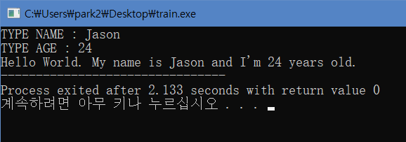 - %s : ๋ฌธ์์ด(char[], char*) ์ถ๋ ฅ